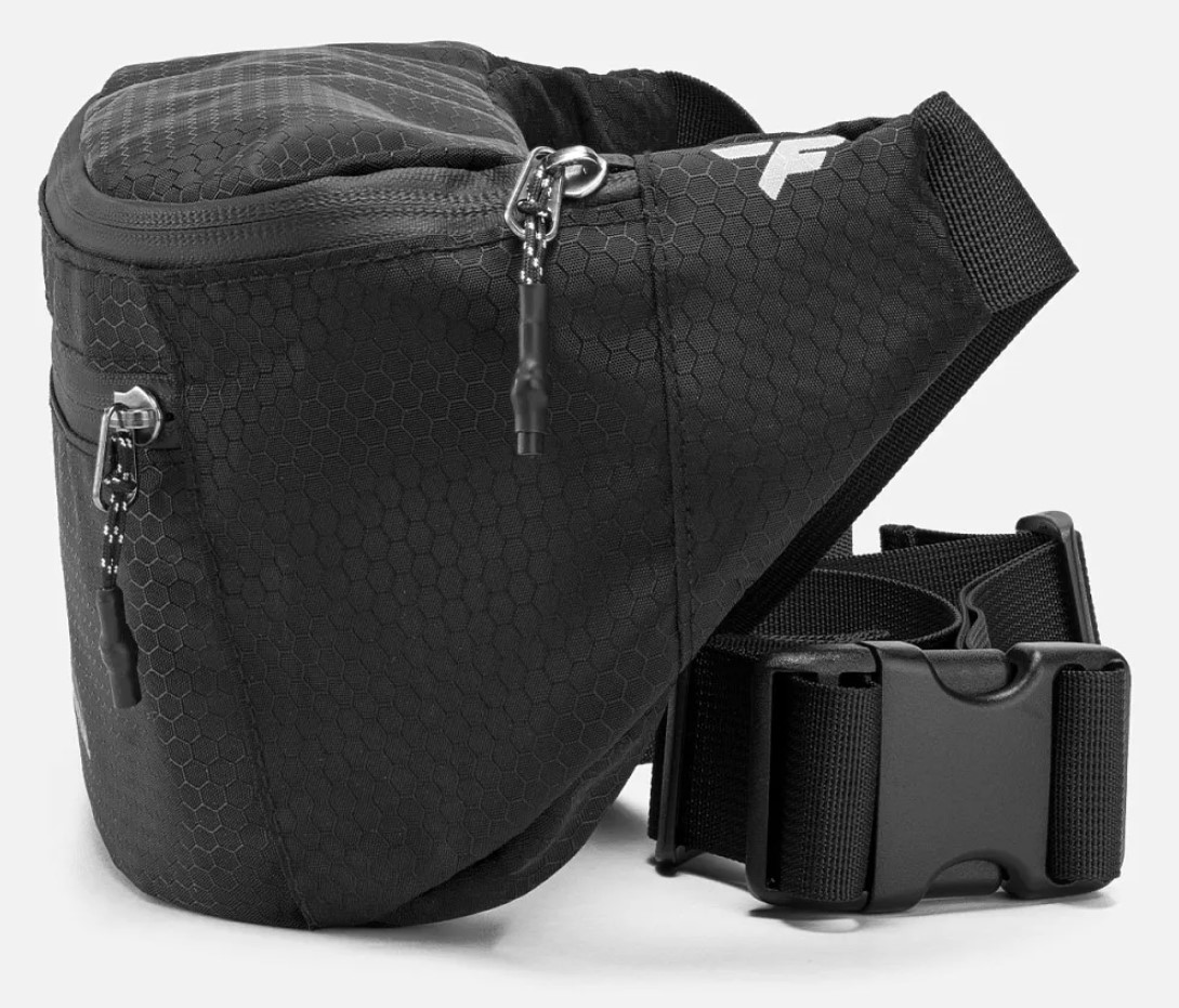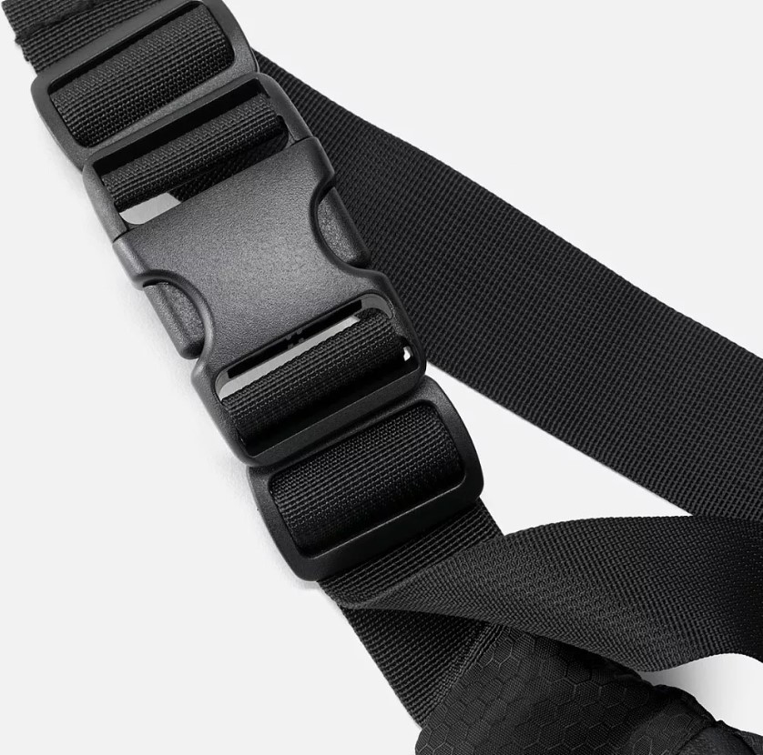 Регулируемый ремень с фастексом позволяет носить сумку на поясе или через плечо, подстраивая посадку под себя.