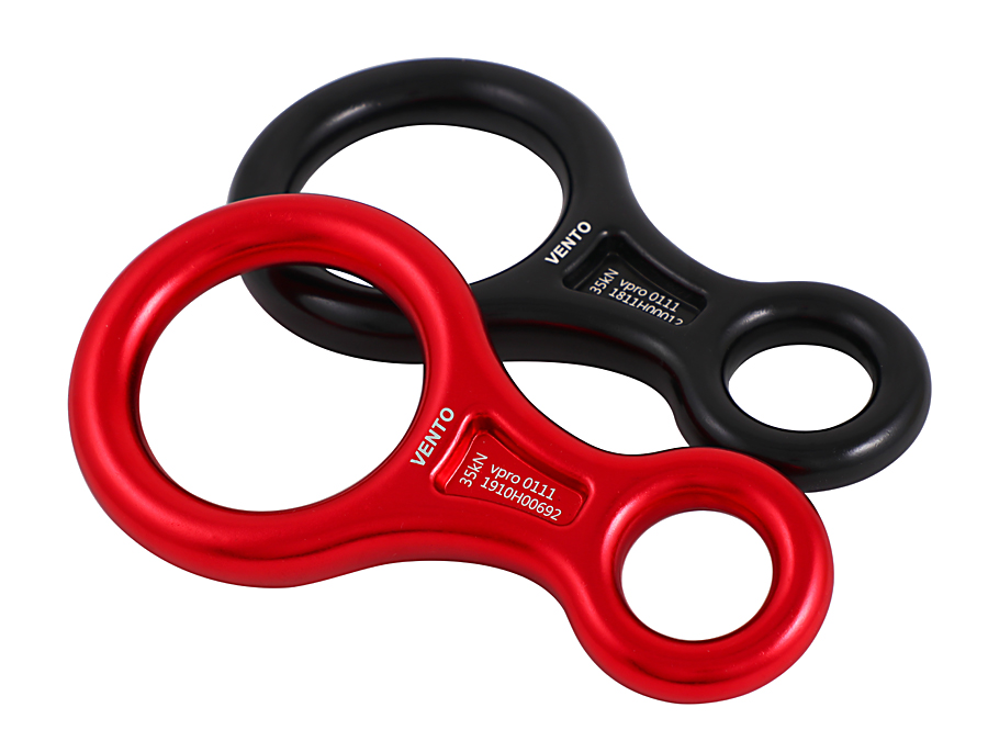 При использовании полуверевок рекомендуется проводить веревку через малое отверстие.